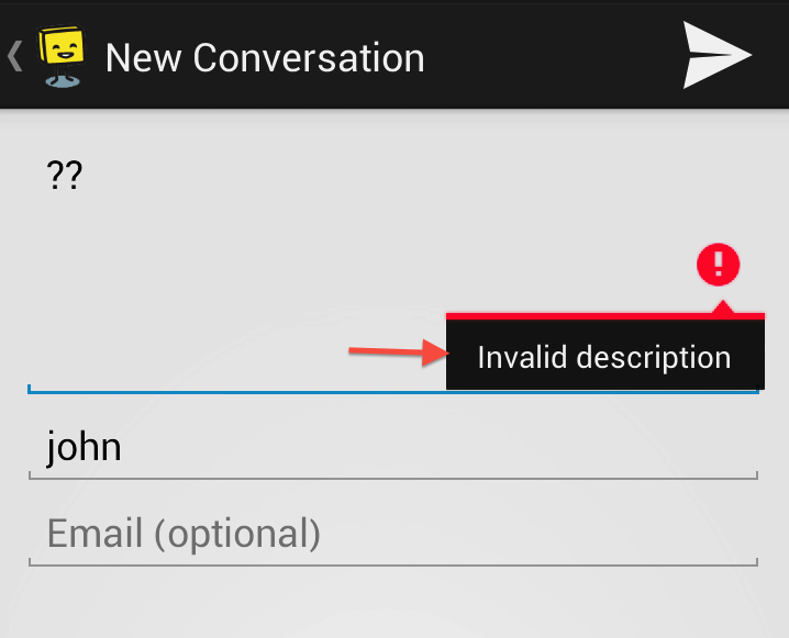 hs__invalid_email_error | Message for AlertDialog that shows when the user leaves the email field empty in new conversation screen. | Please enter a valid email |
